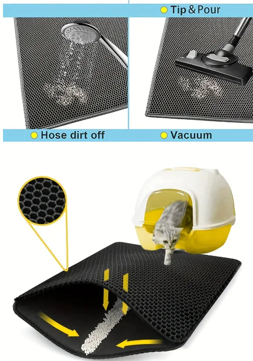使用防溅 EVA 双层猫砂垫,让您的家保持干净整洁。这款垫子采用独特的双层系统设计,可有效捕捉散落的猫砂并防止留下痕迹,确保您的地板保持整洁。顶层柔软舒适,适合猫爪,底层防水防滑,可保护您的表面。这款垫子易于清洁、耐用,采用环保 EVA 材料制成,是任何希望减少猫砂混乱并保持清洁环境的猫主人的完美解决方案。